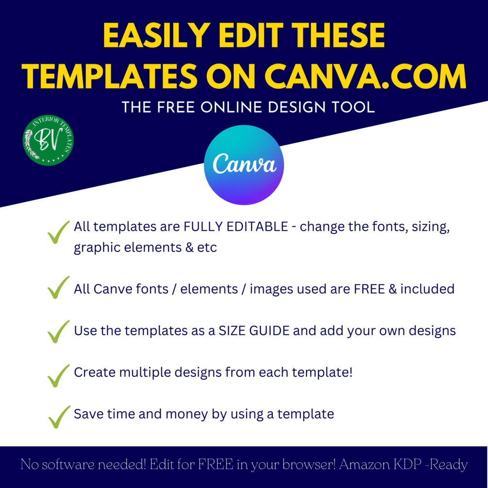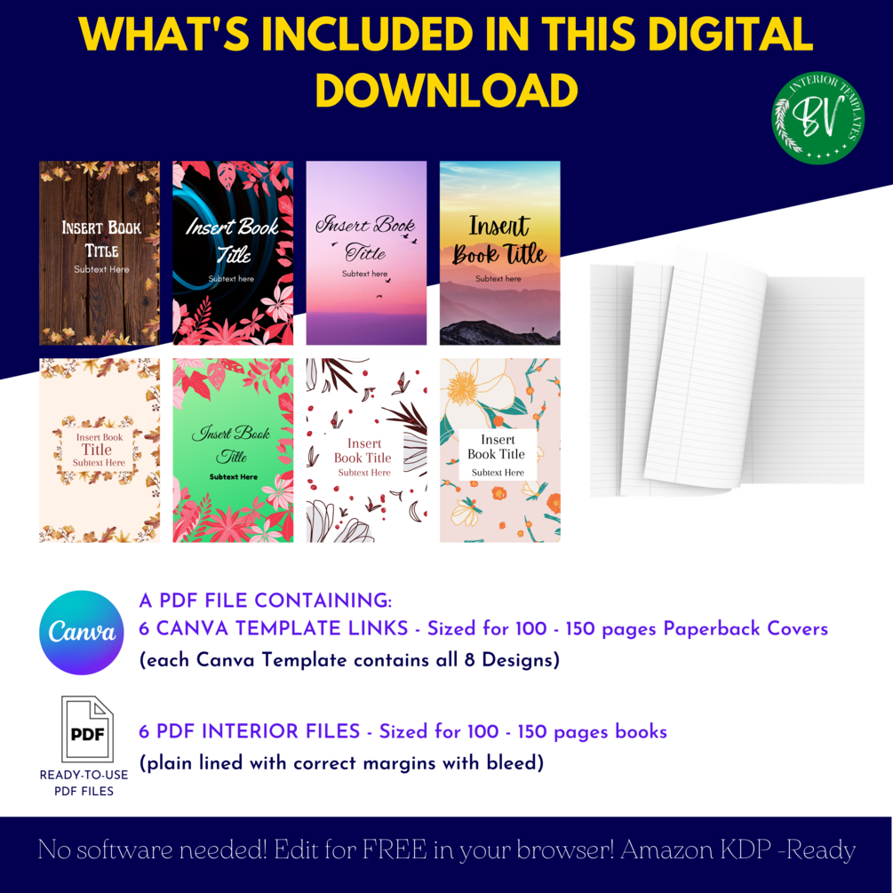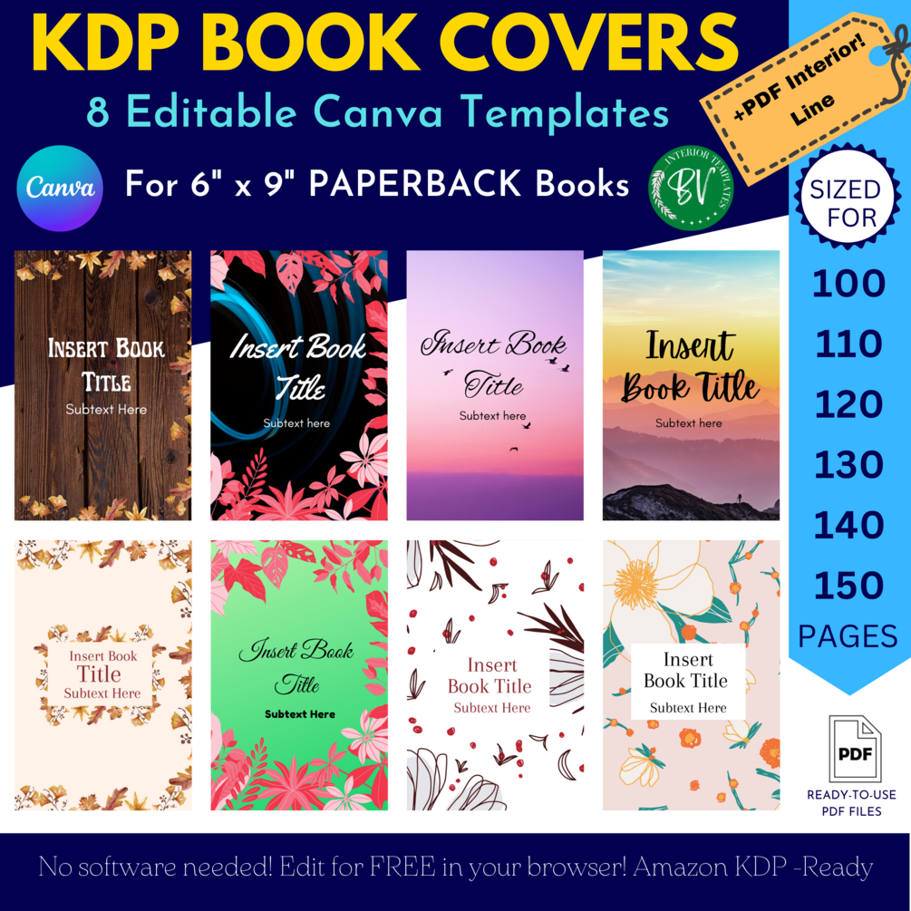 FULLY EDITABLE KDP BOOK COVER TEMPLATES SET | 6x9" | 100-150 PG | + FREE PDF INTERIORS! | AMAZON KDP TESTED ā